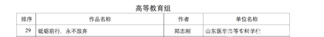 近日,山东省教育厅公布了“师者本色—我的从教故事”征文活动获奖名单,我校医学影像系郑志刚老师的作品《砥砺前行,永不放弃》获评优秀征文。
