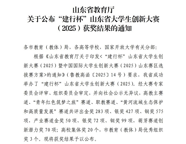 近日,我校在山东省大学生创新大赛中表现优异,凭借出色的创新项目和扎实的实践成果,斩获多项荣誉。