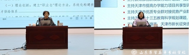 教育部职业教育发展中心研究员赵伟、山东省职业教育学会常务副秘书长杜德昌、淄博职业技术大学原副校长曾照香、天津医学高等专科学校天津卫生健康技术研究院院长、学校国家双高建设办公室主任王芃、山东建筑大学信息化发展与研究中心主任王兆文、山东医学高等专科学校医学检验系副主任闫晓华等专家学者,分别围绕教学成果奖的培育及申报、职业教学标准、人工智能赋能课程建设和改革、职业院校技能大赛等内容作专题报告。报告内容既有对宏观政策的解读,又有微观的方法指导,具有很强的启发性、实用性和可操作性。