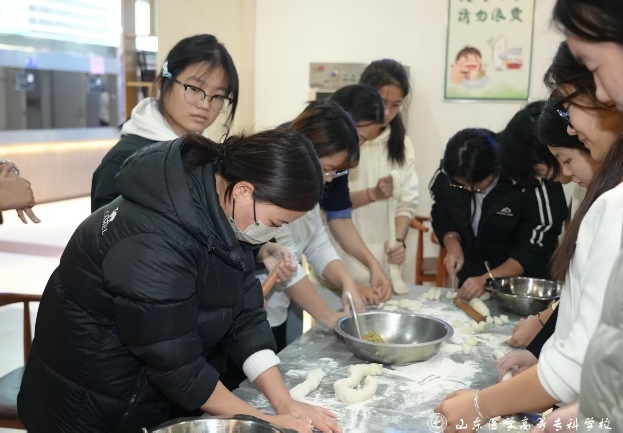 活动现场,擀面杖一压一旋,再舀一勺鲜嫩馅料,指尖翻飞间,元宝饺、月牙饺排满了托盘。大家围坐在一起,品尝着自己亲手包的饺子,师生在彼此的协作里感受传统文化的魅力,收获专属于校园的温暖。
