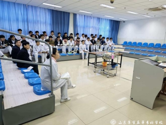 课堂上,校领导认真记录授课内容、观察课堂互动,课后与授课教师交流探讨,对课堂教学的专业贴合度、内容设计及教风学风给予点评,同时叮嘱教师紧扣学校特色,强化医德医风与专业融合,夯实学生职业基础。