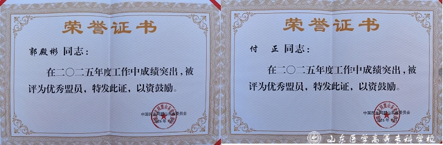 近日,民盟山东医学高等专科学校(济南)支部被民盟山东省委员会授予“2025年度盟务工作先进基层组织”,盟员郭殿彬、付正荣获“优秀盟员”荣誉称号。