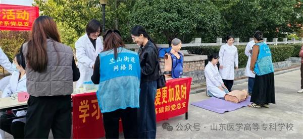 临床医学系党总支与基础部党总支联合赴临沂市兰山区临大社区御景苑小区,开展“情暖重阳 健康同行”公益义诊活动。设置高血压、糖尿病等专项咨询台,为200余人次提供血压血糖检测、用药指导等服务。临床教师现场示教心肺复苏、海姆立克等急救方法,邀请居民实操,还免费发放药品与膳食指南。