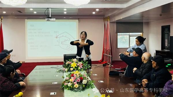 健康与康复系党总支赴临沂市罗庄安康医院开展“情暖重阳 健康相伴”主题党日活动。康复医学教研室老师围绕“预防跌倒”解析风险与应对方法,中医学专业老师结合“药食同源”讲解慢性病饮食调养,并示范保健穴位按摩,还捐赠艾草养生枕等用品。